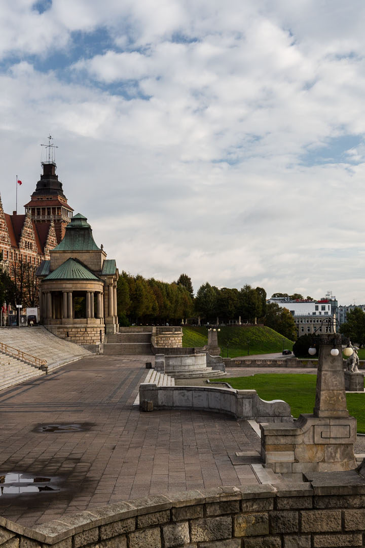 Opuściłem świat street artu i doszedłem na słynne Wały Chrobrego. Jest to jedno z najbardziej reprezentacyjnych miejsce w mieście. Długi na prawie 500 m taras widokowy to idealne miejsce na spacer. W okolicach fontanny można zobaczyć pocztówkowy Szczecin – tryskająca woda, Wały Chrobrego i Muzeum Narodowe w tle. Kolejnym punktem na mojej liście był Most Długi. Jego drewniany poprzednik został wybudowany w 1283 r. W 1959 r. powstała potężna konstrukcja, wtedy jako most zwodzony (dziś już zepsawany), po której jeżdżą ciężarówki i tramwaje. Spacerując wzdłuż Odry Zachodniej, podziwiałem również potężny budynek urzędu celnego znajdujący się po drugiej stronie rzeki. Na koniec spaceru zajrzałem do Bazyliki Archikatedralnej św. Jakuba, czyli drugiego najwyższego kościoła w Polsce.