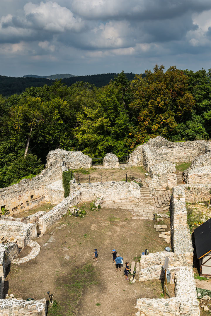 Przepiękna bryła budowli wkomponowana jest pomiędzy pokryte gęstym lasem wzgórza. Najlepszy widok na twierdzę roztacza się z pobliskiej wsi Niedźwiedzica z okolic kościoła. By dostać się do wnętrza zamku, trzeba pokonać odcinek leśnej drogi, która zaprowadzi nas do bramy wejściowej na dziedziniec. Warownia pochodzi najprawdopodobniej z XIV w. Polecam zwiedzić ją z przewodnikiem, który wyjaśni, co działo się z nim na przestrzeni wieków. Koniecznie trzeba także pokonać wąskie schody na wieżę widokową i spojrzeć z góry na Jezioro Bystrzyckie, Góry Sowie i Góry Wałbrzyskie.