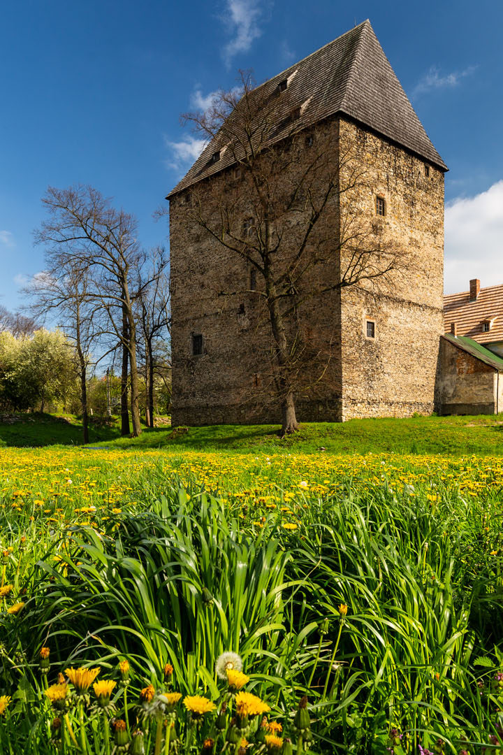 Po spacerze nad zaporą ruszyłem dalej wspomnianą już wąską drogą. Minąłem nieczynną stację kolejową i kawałek dalej most zawieszony wysoko nad wodą (odradzam chodzenie po nim, bo deski są w opłakanym stanie i jest to bardzo niebezpieczne). Na głównej szosie skręciłem w prawo i przez Siedlęcin udałem się do Jeleniej Góry. Po drodze można zatrzymać się, by zwiedzić wieżę książęcą w Siedlęcinie. W jej wnętrzach znajdują się średniowieczne malowidła przedstawiające legendę o Lancelocie, Rycerzu Okrągłego Stołu. W Jeleniej Górze wielokrotnie parkowałem przy ul. Jeleniej (płatne w parkomacie w dni robocze), rynek jest stamtąd na wyciągnięcie ręki.