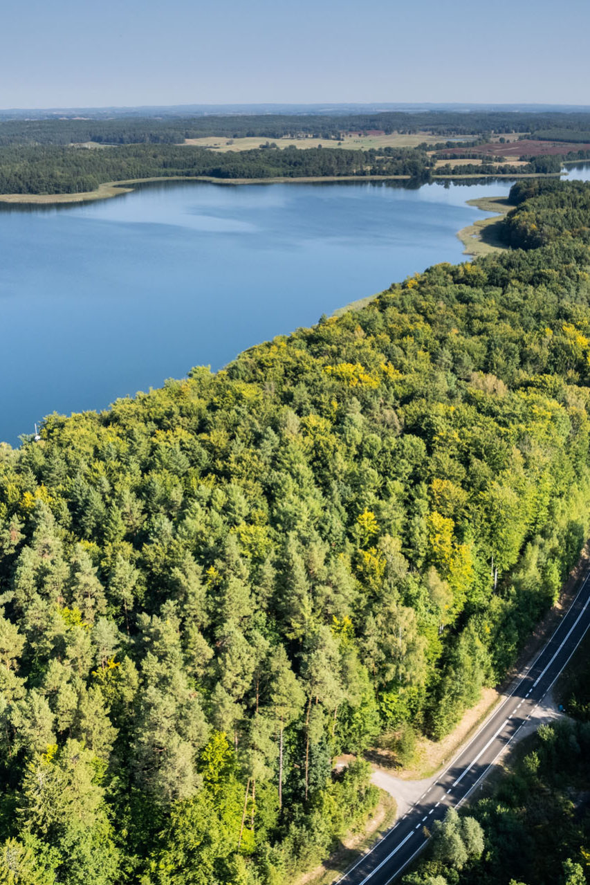 W połowie drogi między Czaplinkiem a Łubowem skręciłem w lewo i pojechałem nad Komorze. Jest to jezioro rynnowe o długości 7,5 km i maksymalnej szerokości 1 km. Na jego tafli dostrzec można cztery malownicze wysepki. To świetne miejsce na krótki spacer po bujnych lasach porastających jego północny brzeg. Mając w pamięci długość zaplanowanej trasy, stwierdziłem, że w takim tempie podróż może mi zająć dobre dwa tygodnie, dlatego postanowiłem, że następnym przystankiem będzie dopiero Szczecinek. Dobra muzyka, piękne widoki za oknem i stosunkowo niewielki ruch jak na piątkowe popołudnie sprawiły, że godzina jazdy minęła błyskawicznie. Zaparkowałem na tyłach ratusza (przy ul. Ogrodowej jest przestronny parking) i udałem się na spacer po mieście. Nie obrażając mieszkańców Szczecinka, zauważyłem, że nie jest to zbyt turystyczne miasto, choć jego potencjał jest bardzo duży. Piękny rynek z ratuszem, przestronne deptaki dookoła, park z ogrodem różanym, zamek (siedziba Lasów Państwowych) i bulwary nad jeziorem Trzesiecko zrobiły na mnie bardzo dobre wrażenie.