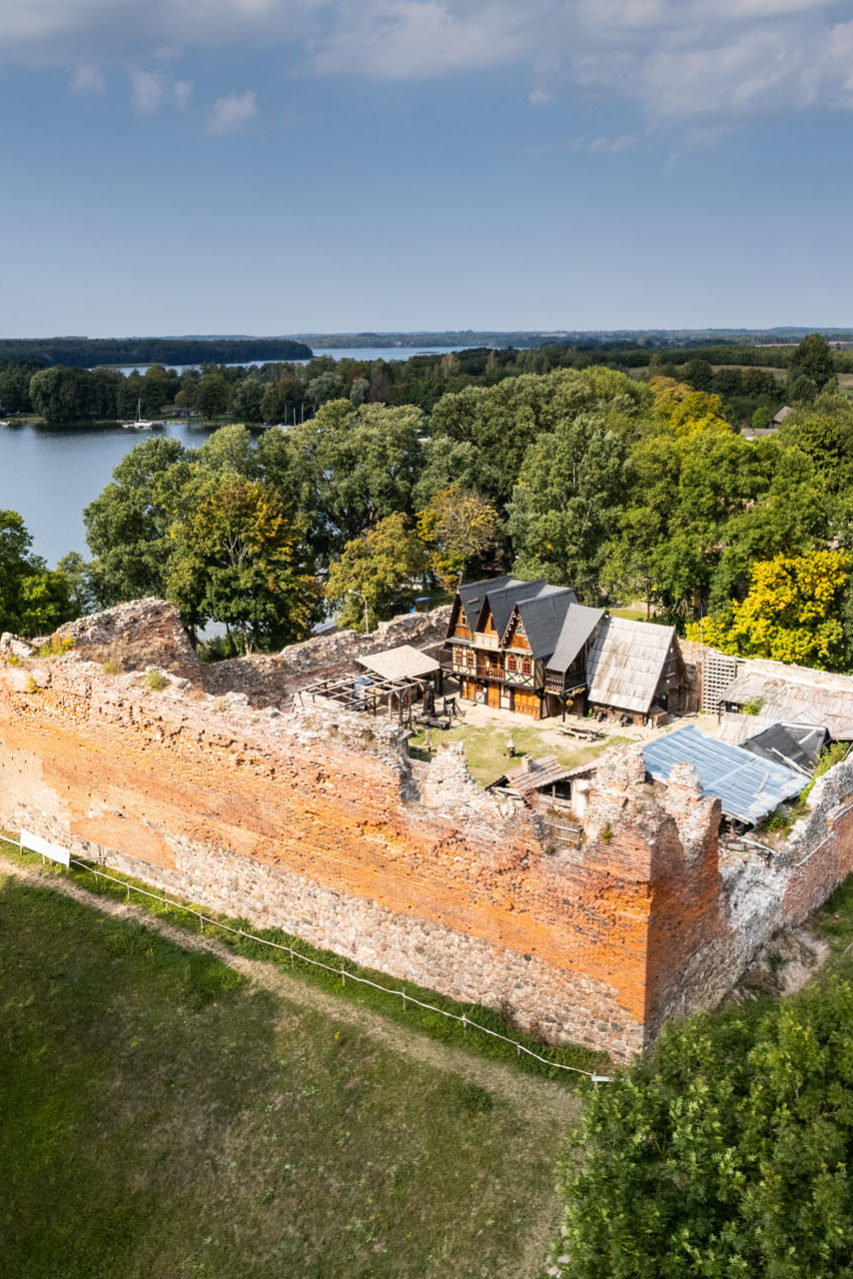 W okamgnieniu znalazłem się w Czaplinku, skąd kolejny raz zjechałam z trasy, tym razem około 6 km na północ. Tak znalazłem się w Starym Drawsku, które niegdyś nosiło spolszczoną, poniemiecką nazwę Drahim (od Alt Draheim). Na wąskim przesmyku między jeziorami Drawsko i Żerdno znajdują się ruiny średniowiecznego zamku joannitów. Stanął on w miejscu dawnego słowiańskiego grodziska, na podniesionym o 6 m kopcu o wymiarach 50×50 m. Zakon rycerski wybudował zamek w latach 1360-1366 w celu obrony komandorii znajdującej się w Czaplinku. Znajdował się on również na szlaku solnym biegnącym z północy na południe Europy. Twierdza drahimska była bardzo dobrze ufortyfikowana i trudno było ją zdobyć. Otaczał ją potężny mur z bramą w części północnej. Wnętrze wypełniał dziedziniec otoczony budynkami mieszkalnymi. Do jego budowy użyto głazów granitowych i cegieł. Z joannitami rozprawił się skutecznie król Władysław Jagiełło, który po kilkudniowym oblężeniu zdobył zamek i uczynił siedzibą polskiego starostwa grodowego. Po potopie szwedzkim trafił on w ręce Brandenburczyków, którzy władali nim aż do 1772 r., czyli do I rozbioru Polski. Pożar w połowie XVIII w. rozpoczął powolny proces niszczenia i degradacji zamku. W 1927 r. podjęto pierwsze próby zabezpieczenia ruin, ale dopiero lata 60. XX w. przyniosły solidną konserwację i zabezpieczenie go w stanie trwałej ruiny. W latach 90. XX w. trafił w ręce prywatne. Obecnie mieści się w nim muzeum i w sezonie letnim jest udostępniony do zwiedzania. Byłem w tym miejscu na początku września i niestety odbiłem się od zamkniętych drzwi. Zyskałem jednak powód, żeby jeszcze kiedyś zajrzeć do Drahimia. Swoją drogą tuż obok zamku znajduje się Gospoda Podzamcze, w której można zjeść pyszny obiad. Delektowałem się jedzeniem, patrząc na spokojne wody jeziora Drawsko. Coś pięknego!