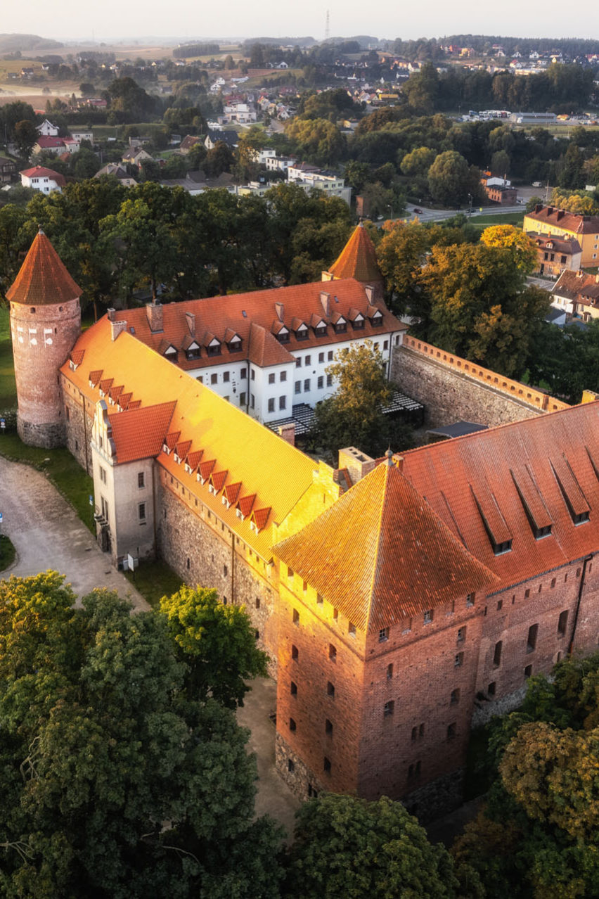 Z wielką przyjemnością pokonałem 90 km dzielące Szczecinek od Bytowa. Droga nr 20 cały czas mnie zachwycała i wcale nie musiałem z niej zjeżdżać, bo cieszyłem oczy pięknymi widokami. Do Bytowa dojechałem o zachodzie słońca. Zaplanowałem nocleg w zamku krzyżackim, bo to przecież świetna przygoda sama w sobie! Zamek został wybudowany po koniec XIV w. i stanowił ważny przyczółek na zachodnim krańcu państwa zakonu krzyżackiego. Budowę ukończono na początku XV w. Ma on kształt prostokąta, w trzech narożach znalazły się okrągłe baszty, a od północy postawiono kwadratową wieżę. W jego skład wchodził Dom Zakonny z refektarzem, kaplicą i mieszkanie prokuratora krzyżackiego (administratora prokuratorii, czyli okręgu), a także budynek z kuchnią i magazynem. Wjazd na zamek prowadził przez bramę od północnego wschodu, którą zabezpieczono fosą z mostem zwodzonym. W twierdzy zastosowano rozwiązania, które dostosowane były do rozwijającej się w tamtym okresie broni palnej. W polskich rękach znalazł się dwa razy. Król Władysław Jagiełło zdobył go w 1410 r., ale po I pokoju toruńskim zwrócono go krzyżakom, a następnie król Kazimierz Jagiellończyk w 1466 r. ponownie przejął warownię. Przekazał ją jako lenno we władanie książętom pomorskim. Z początkiem XVI w. zamek otoczono bastejami, z których możliwy był ostrzał artyleryjski. Za sprawą rodu Gryfitów, którzy przejęli władzę nad twierdzą w połowie XVI w., powiększono ją o renesansowy Dom Książęcy. W związku z włączeniem okolicznych ziem do Królestwa Polskiego w XVII w. zamek stał się siedzibą starosty królewskiego. W czasie wojny polsko-szwedzkiej w połowie XVII w. fortyfikacja poniosła znaczne straty. Sukcesywnie traciła funkcje obronne, przekształcając się w siedzibę urzędów i sądu. Jeszcze przed II wojną światową podjęto próby renowacji i kontynuowano je aż do lat 90. XX w. Obecnie w zamku mieści się Muzeum Zachodniokaszubskie, biblioteka oraz hotel z restauracją.