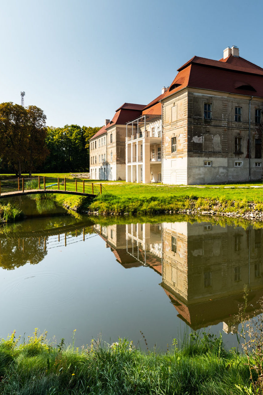Za to przed Czaplinkiem moją uwagę przykuł pałac w Siemczynie. Wieś otoczona jest bujnymi lasami, od zachodu graniczy z jeziorem Wilczkowo, a od wschodu z odnogą jeziora Drawsko. W centralnym punkcie wsi, w oddaleniu od głównej drogi, stoi największy zachowany na Pomorzu Zachodnim barkowy pałac z XVIII w. Wybudowano go w latach 1722-1726 na zlecenie Henninga Berndta von der Goltza. Zbudowany jest w kształcie podkowy, w środkowej części ma taras. Główny gmach przykrywa mansardowy dach. W 1793 r. majątek trafił w ręce rodu von Arnim. Nastąpiła wtedy rozbudowa pałacu o południowe skrzydło, w którym umieszczono sypialnie i pokoje gościnne. Na początku XIX w. powiększono folwark otaczający pałac, ale niestety już w 1807 r. majątek został zdewastowany przez oddziały generała Vincentiego. Borykająca się z kłopotami rodzina von Arnim władała Siemczynem do końca XIX w. W 1905 r. pałac trafił w ręce francuskiego bankiera Adolfa Marwitza, który już po roku sprzedał go Erykowi von Brocke. Niewiele później, bo w 1907 r., należał już do rodu von Bredow i to im pałac zawdzięcza gruntowny remont i dobudowanie północnego skrzydła, do którego trafiła kuchnia przeniesiona z piwnic. W 1945 r. zarządzono ewakuację wsi, a jej nazwę zmieniono z Heinrichsdorf na Henrykowo i dopiero w 1947 r. przemianowano ją na Siemczyno. Majątek został upaństwowiony, PGR przejęło gospodarstwo, a pałac pełnił różne funkcje, stopniowo popadając w ruinę. W 1999 r. wraz z najbliższymi zabudowaniami trafił ręce prywatne. Obecnie funkcjonują w nim dwa muzea: „Pałac Siemczyno w epoce baroku” oraz „Uniwersalium Rzemiosł Różnych”. W zabudowaniach folwarcznych otwarty został hotel. Krótki spacer dookoła pałacu okazał się bardzo miłym przerywnikiem na mojej trasie.
