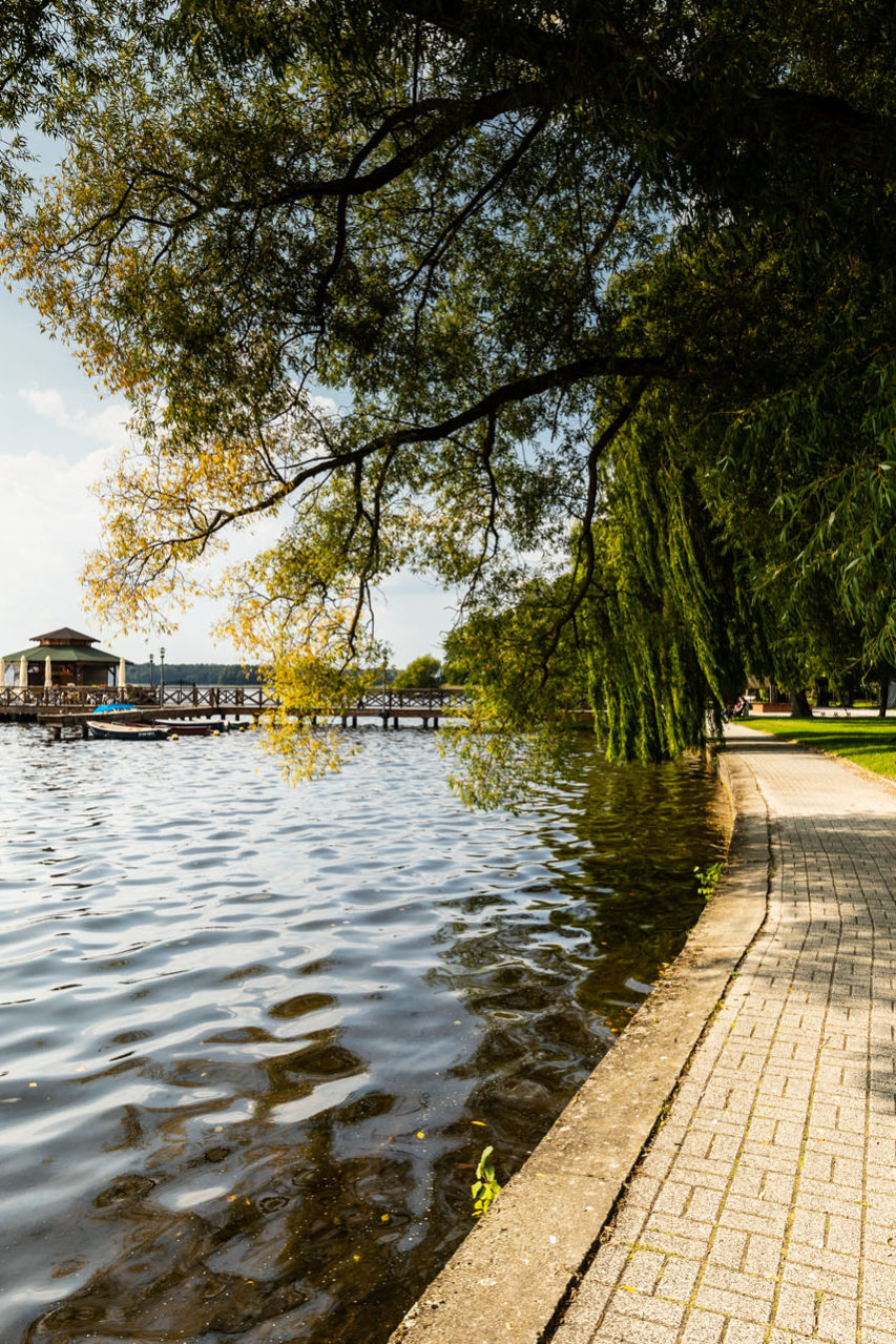 Słońce tyle co wstało nad horyzontem. Miasto leniwie budziło się do życia, a ja zaparkowałem nieopodal Rynku Staromiejskiego i wybrałem się niespiesznie na spacer. Wiedziałem, że ze względu na wczesną porę wszystkie stargardzkie atrakcje będą jeszcze zamknięte, ale zamierzałem skupić się na tym, co ciekawego można obejrzeć z zewnątrz. Zobaczyłem sporo gotyckich budowli: Dom Protzena, kolegiatę Najświętszej Maryi Panny Królowej Świata, a także Arsenał i Basztę Jeńców. Wszystkie te zabytki położone są blisko siebie, więc obszedłem niewielki fragment miasta, a już wrażeń miałem całkiem sporo. Po niespełna godzinie poczułem, że czas ruszać dalej. Pokonałem około 10 km i całkowicie zmieniłem klimat otoczenia. Zatrzymałem się przy malowniczym jeziorze Bliźniaki. Są to dwa niewielkie akweny rozdzielone wąską groblą. Brzegiem biegnie droga obsadzona potężnymi topolami. Chwila spaceru i dalej w drogę. Jechałem przez Chociwel do Węgorzyna. Miałem wrażenie, jakbym był na jakieś malowniczej bocznej drodze, bo poza kilkoma tirami nic na tej trasie nie wskazywało, że to „krajówka”. Wyprzedzając fakty, mogę stwierdzić, że dopiero od Kościerzyny do Gdyni ruch był zdecydowanie większy. Mój zachwyt trwał więc przez jakieś trzy czwarte tego odcinka podróży. W Węgorzynie zrobiłem pierwszy większy skok w bok i zjechałem do Świdwina.