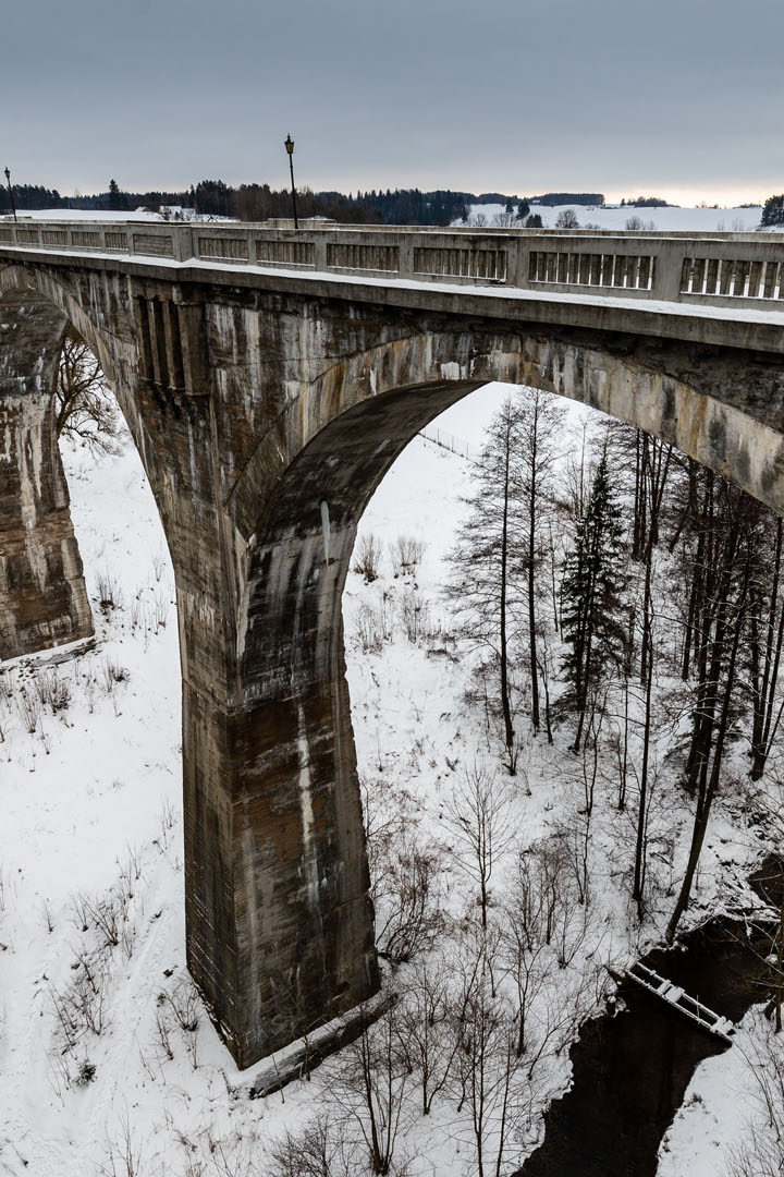 Po przydługim wstępie pora ruszać! Trasa zaczyna się przy zapierających dech w piersiach mostach w Stańczykach. Długie na 180 metrów i wznoszące się około 36 metrów nad ziemią należą do jednych z najwyższych i najstarszych w Polsce konstrukcji. Są częścią nieczynnej już infrastruktury linii kolejowej łączącej Gołdap z Żytkiejmami.