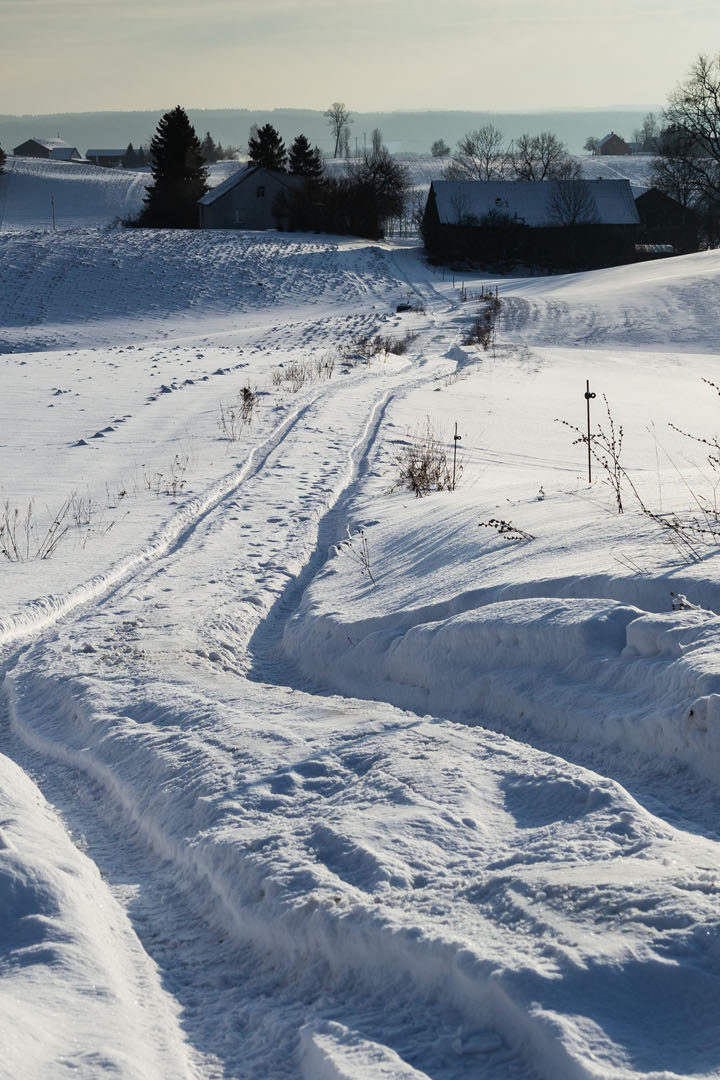 Namawiając do zimowej eskapady na Podlasie, nie mógłbym nie zaznaczyć, że jest to podróż będąca wyzwaniem dla kierowcy. Co prawda nie ma na tej trasie ogromnych wzniesień czy stromych serpentyn, ale stan nawierzchni pozostawia wiele do życzenia. Dodatkowo drogi są oblodzone. O ile nie stanowi to wielkiego problemu podczas ostrożnej jazdy, o tyle hamowanie staje się nie lada sztuką. Maksimum ostrożności należy zachować także podczas wymijania innych pojazdów. Często wiatr zwiewa śnieg na szosy, przez co stają się wąskie, a momentami znikają z oczu w szczerym polu. Po większych opadach czy zawiejach śnieżnych warunki na trasie nie sprzyjają kierowcom. Nie są to jednak rzadko uczęszczane drogi, więc zazwyczaj mieszkańcy przecierają je, zanim zjawi się ktoś przyjezdny. Piszę o tym głównie dlatego, że taka jazda wymaga sporej wprawy, uważności, a także zdarza się, że zajmuje 2 razy więcej czasu, niż wskazuje nawigacja. W czasie mojej wyprawy musiałem do każdej godziny doliczać około 15 minut, które zajmowała powolna jazda po lodzie czy mijanie się z innymi samochodami.