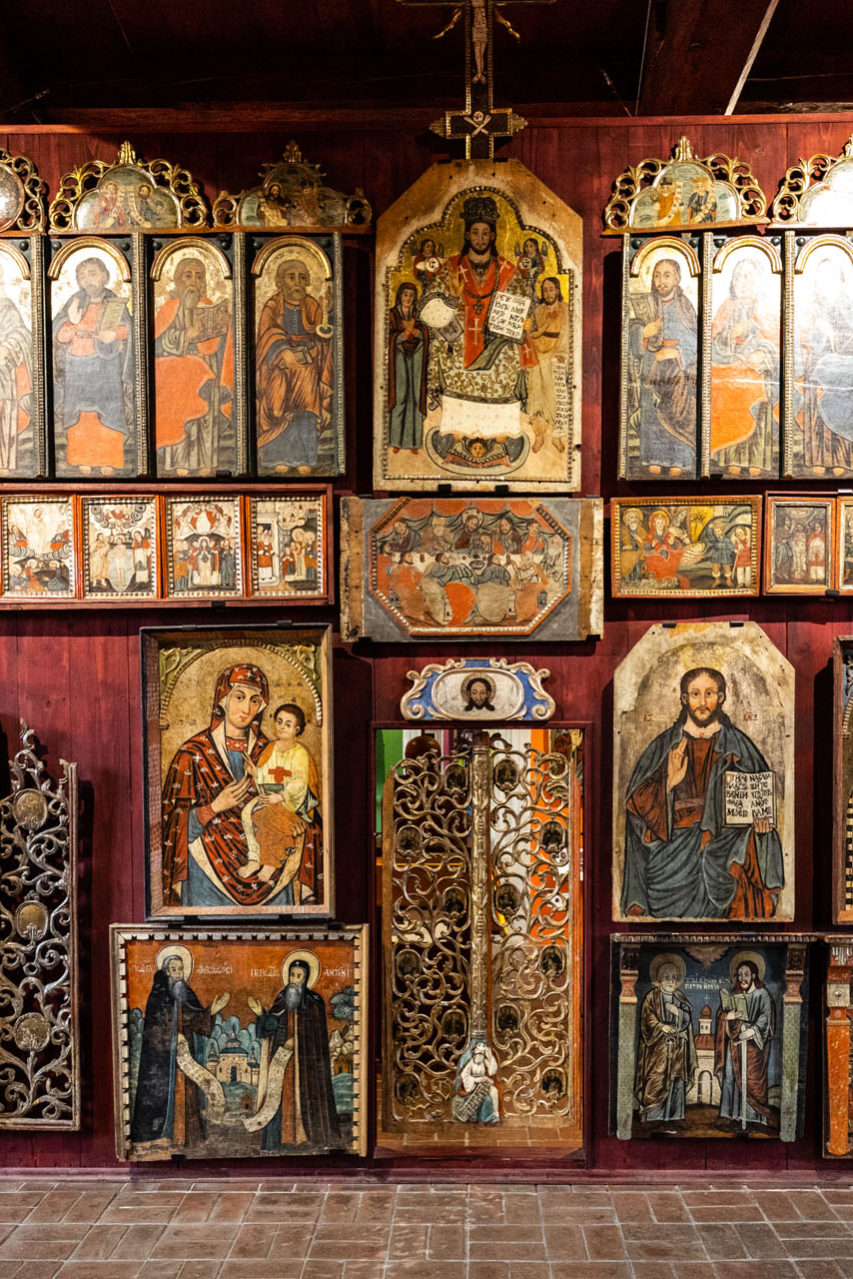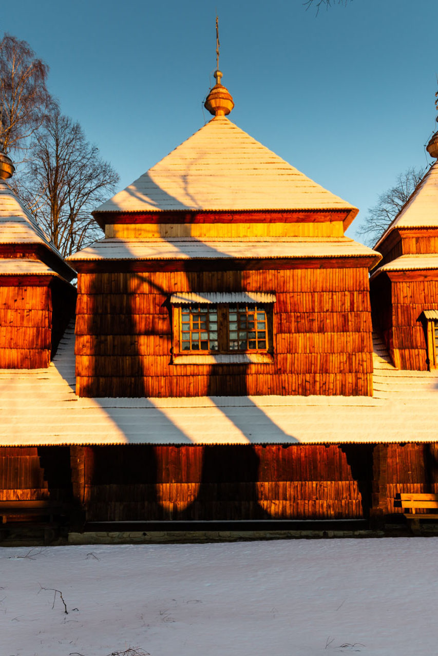 Zanim opuściłem główne drogi i zanurzyłem się w górach, odwiedziłem Sanok. Wybierający się w Bieszczady powinni wkalkulować w podróż minimum pół dnia na wizytę w tym królewskim mieście. Istnieją co najmniej dwa powody, dla których warto się w nim zatrzymać. Pierwszym jest Muzeum Budownictwa Ludowego. To miejsce uczy patrzeć na historię Bieszczadów w zupełnie inny sposób. Nie tylko przez pryzmat natury, ale również wielowiekowej kultury i tradycji, którą w brutalny sposób zniszczono. Z dawnego świata pozostały zgliszcza, a to, co udało się ocalić przed zagładą, dziś pięknie prezentuje się w rozległym skansenie w Sanoku. Dzieli się on na sektory pokazujące życie w dawnych wsiach Bojków, Łemków, Dolinian i Pogórzan. To pozostałości kultury, która niemal w całości bezpowrotnie zniknęła po II wojnie światowej. Zwiedzanie rozpoczyna się od przejścia przez Galicyjski Rynek, który można podziwiać nie tylko z zewnątrz, ale jest też możliwość, by zajrzeć do wnętrza dawnych punktów usługowych, bez których nie mogło funkcjonować żadne miasteczko. Zwiedzanie skansenu wywołuje ogromne emocje, szczególnie jeśli zgłębi się temat Akcji „Wisła” i historię II wojny światowej na tych terenach. O ile w innych regionach Polski dawne budowle były sukcesywnie zastępowane nowymi, tak w tym zakątku Karpat człowiek przerwał bieg historii, zniszczył oryginalną architekturę i pozostawił pustkę. Domostwa wysiedleńców nie przetrwały próby czasu. Na podstawie zachowanego fragmentu tego pięknego świata można sobie tylko wyobrazić urokliwe wsie ukryte w bieszczadzkich dolinach. Drugim miejscem w Sanoku, które trzeba odwiedzić, jest Muzeum Historyczne. Mieści się ono w widocznym z daleka sanockim zamku. W czasach Kazimierza Wielkiego w Sanoku był drewniany gród. Zamek odwiedzali Władysław Opolczyk czy później Władysław Jagiełło, który zorganizował w nim ucztę weselną z okazji swojego ślubu z trzecią żoną, księżniczką Elżbietą Granowską. A Zofia Holszańska, czwarta i ostatnia żona Jagiełły, spędziła w nim ostatnie 26 lat życia. W pierwszej połowie XVI w. królewski zamek przebudowano z surowego gotyku na styl renesansowy. W piwnicach znajdowały się sądy, a dwa górne piętra przeznaczono na miejscowe urzędy. Obok zamku stała wieża, która pełniła rolę więzienia. Pod koniec XVI w. dobudowano skrzydło południowe, a na przełomie XVII/XVIII w. zamek powiększył się o skrzydło północne. Przetrwał zabory i lata wojenne, choć nie bez uszczerbku. Po II wojnie światowej, w latach 60., zapadła decyzja o jego renowacji. W 2010 r. rozpoczęła się odbudowa południowego skrzydła, które obecnie służy stale powiększającym się zbiorom muzealnym. Przechodząc przez kolejne sale wystawowe, można poznać bogatą historię regionu i zobaczyć dużą ilość pięknie zaprezentowanych eksponatów. Miłośnicy sztuki polskiej doskonale wiedzą, że w 1929 r. w Sanoku urodził się wybitny artysta Zdzisław Beksiński. W testamencie cały swój dorobek artystyczny zapisał Muzeum Historycznemu w Sanoku. W 2012 r. w odbudowanym południowym skrzydle zamku otwarto stałą Galerię Zdzisława Beksińskiego. Zajmuje ona kilka kondygnacji, na których poza obrazami, fotografiami czy grafikami znalazło się także miejsce na precyzyjnie zrekonstruowaną pracownię artysty, którą przeniesiono z jego warszawskiego mieszkania.