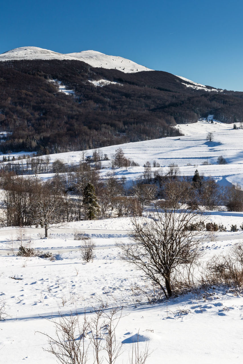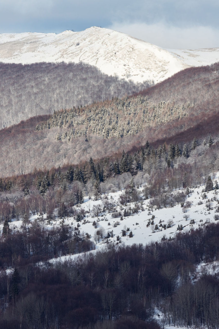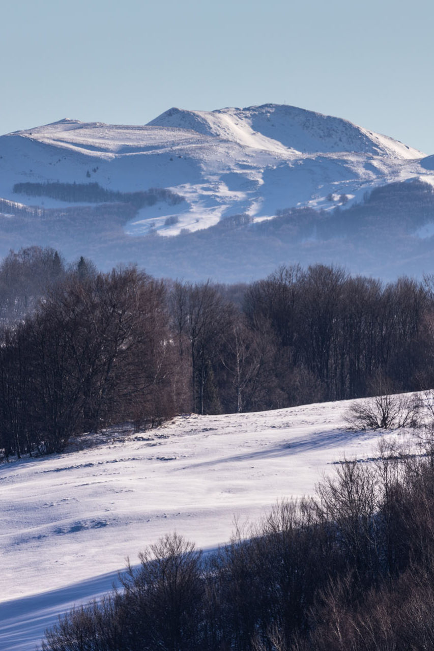Nikogo nie zaskoczę tym, że zimy w ostatnich latach są po prostu paskudne. Kilka dni chłodu przeplata się z kilkoma dniami ciepła. Śnieg, jeśli już spadnie, to często nie leży dłużej niż dobę. Inny stan uznaje się za anomalię i media zaczynają wtedy trąbić o zimie dekady albo śnieżne fronty nazywają bestiami. Choć na co dzień nie przepadam za zimą, to w wydaniu górskim traktuję ją zupełnie inaczej. Lubię patrzeć na ośnieżone szczyty gór. Lubię ciszę, która panuje w górskim lesie, gdzie nie szeleszczą liście. Lubię to, że wszystko widać jak na dłoni. Mroźne powietrze potrafi zapewnić doskonałą widoczność. Kiedy w grudniu usiadłem przed mapą Polski i szukałem regionu, w którym na pewno znajdę zimowy klimat, mój wzrok padł właśnie na Bieszczady. Uznałem, że jest to prawdopodobnie najpewniejszy kierunek i miejsce, gdzie zobaczę śnieg, pospaceruję w mrozie i podelektuję się błogą ciszą. Tatry odrzuciłem, bo nie miałem w planach górskich wędrówek. Są jeszcze inne miejsca w polskich górach, szczególnie w Sudetach, gdzie panuje wyjątkowy mikroklimat i nawet kiedy w dolinach nie ma śniegu, to tam jest go pod dostatkiem. Polana Jakuszycka, Zieleniec czy Karłów w Górach Stołowych to punkty, gdzie Królowa Śniegu czuje się jak w domu. Zimą jednak roi się tam od narciarzy (poza Karłowem), więc uznałem, że tym razem to nie dla mnie. Zimowa wyprawa, o jakiej marzyłem, to podróż do górskiej krainy wypełnionej śniegiem i ciszą. Nie miałem wątpliwości, że znajdę ją w Bieszczadach.