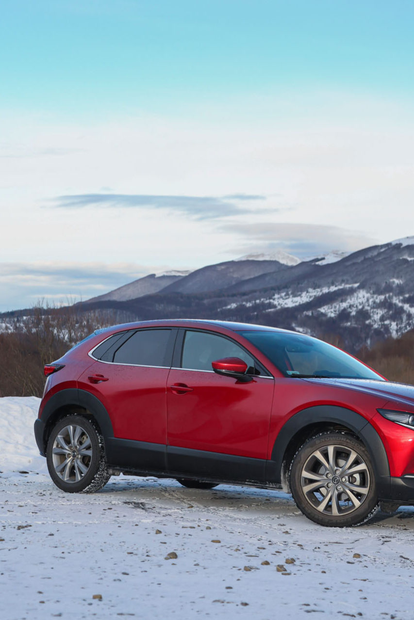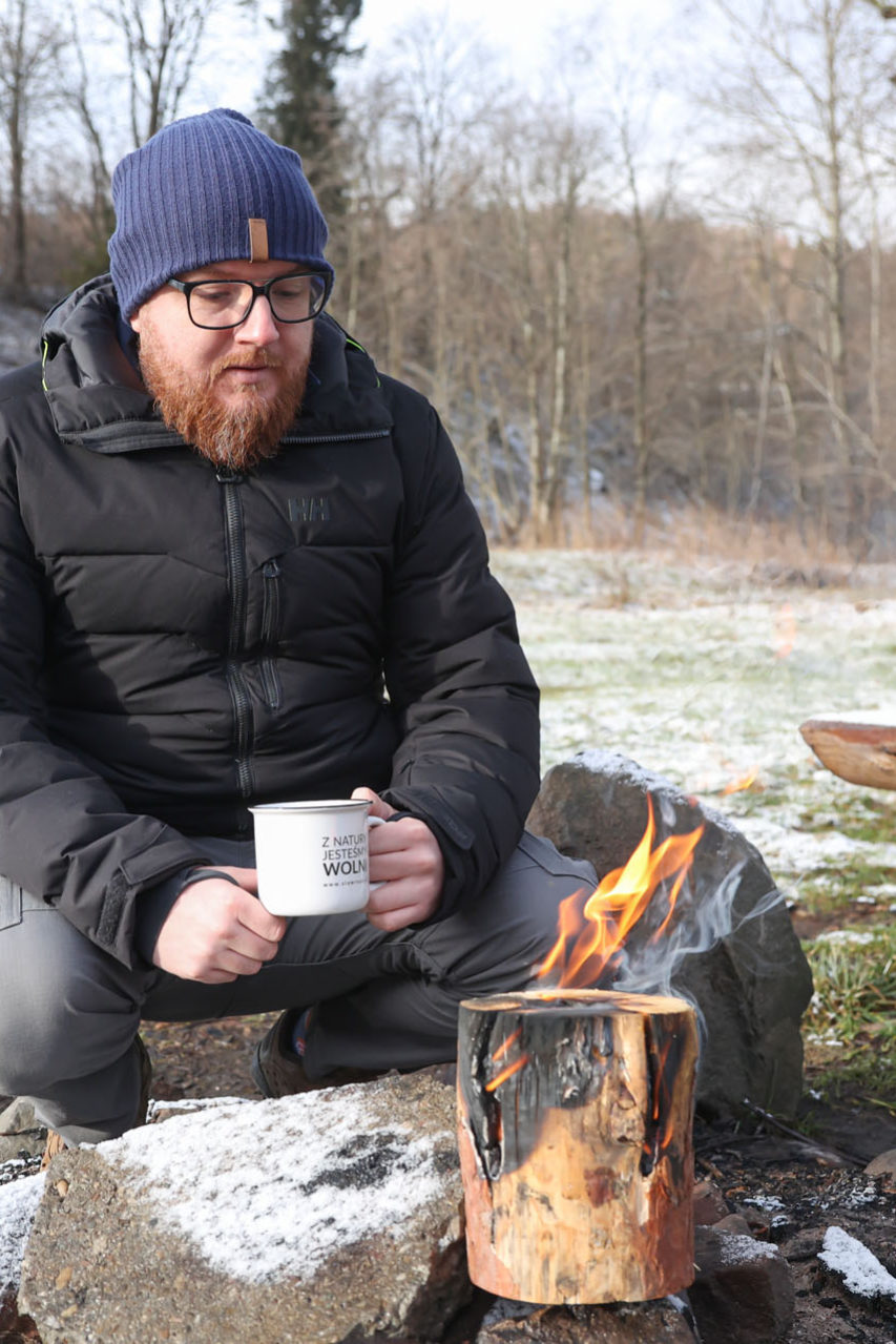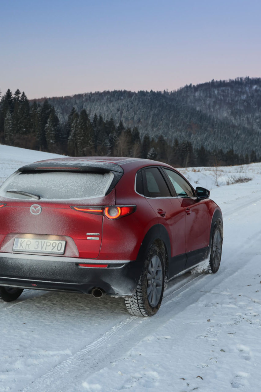 Obudziłem się w egipskich ciemnościach. Na zewnątrz nadal było szaroburo. Wystartowałem w kierunku Wołosatego i bez wielkich nadziei pokonywałem kolejne kilometry. Droga była ekstremalnie śliska, bo w nocy temperatura spadła sporo poniżej zera. W połączeniu z deszczem z dnia poprzedniego powstało klasyczne lodowisko. Prawdziwy slow road. Z początku obawiałem się czekających mnie podjazdów, ale inteligentny napęd 4×4 w mazdzie CX-30 w połączeniu z dobrymi oponami zimowymi sprawił, że w kierunku Wołosatego jechałem bez większych przygód. Z każdym kilometrem robiło się również bardziej zimowo. Miejsce szronu zajął śnieg, a kiedy zobaczyłem znak końca drogi w Wołosatym, dookoła mnie było już całkiem zimowo. Pierwotnie planowałem wejść na Tarnicę, ale warunki na szlaku były niebezpieczne i zrezygnowałem z kilkugodzinnej walki na lodzie. Zimą góry uczą pokory i wymagają pokory. Wybrałem nieco prostszy i krótszy szlak. Pojechałem przez Ustrzyki Górne na Przełęcz Wyżniańską i postanowiłem wejść na grzbiet Połoniny Caryńskiej. Nawet tak proste wyjście w góry zimą wymaga sporej dozy ostrożności. Istotne jest, żeby zabrać ze sobą odpowiednią odzież na wypadek nagłej zmiany warunków. Obowiązkowo trzeba mieć też latarkę i dobrze naładowany telefon z zapisanym numerem alarmowym do GOPR-u. Do plecaka powinien trafić również termos z ciepłą herbatą. O planowanej wycieczce koniecznie trzeba poinformować kogoś bliskiego. Wystarczy podać godzinę wyjścia, miejsce docelowe i planowaną godzinę powrotu. Media wielokrotnie przekazują apele rodzin poszukujących swoich bliskich, którzy wyszli w góry bez słowa i ślad po nich zaginął. Jeśli ustalimy z kimś bliskim godzinę graniczną, kiedy podejmiemy kontakt po zejściu z gór, zapewniamy sobie bufor bezpieczeństwa i ułatwiamy ewentualnie pracę służbom ratunkowym. Jest to niezwykle ważne, kiedy w góry idzie się w pojedynkę. Proste skręcenie nogi może okazać się śmiertelnym niebezpieczeństwem, bo zimą szlaki są mało uczęszczane, organizm szybko się wychładza, a zasięg telefoniczny w górach i elektronika w niskich temperaturach bywają zawodne. Na Przełęczy Wyżniańskiej trzeba pamiętać o jeszcze jednej obowiązkowej rzeczy. Jest nią zakup biletu wstępu do Bieszczadzkiego Parku Narodowego. Jeśli w punkcie obsługi parkingu nie ma nikogo, to bilet zakupić można w internecie na stronie parku. Po zejściu z gór zamarzyło mi się posiedzieć przy ognisku. Miałem to w planach od dawna, więc byłem przygotowany na tę okoliczność. Wiedziałem, że muszę opuścić teren parku narodowego, więc wcześniej przy drodze z Ustrzyk Górnych do Ustrzyk Dolnych znalazłem parking z wyznaczonym przez nadleśnictwo miejscem na ognisko. Rozpalenie ognia zajęło mi dokładnie 10 sekund. Miałem ze sobą specjalnie przygotowany pień, do którego wkłada się zapaloną zapałkę i dalej magia dzieje się sama. Było to naprawdę bardzo kojące i uspokajające, i nawet nie przeszkadzała mi bliskość drogi. Robiło się ciemno, więc postanowiłem odwiedzić restaurację „Wilcza Jama”. Fani serialu „Wataha” znają jej wnętrza, które nie kryją zamiłowania właściciela do myślistwa. Kiedy wchodziłem do środka, na zewnątrz nie było ani milimetra śniegu. Kiedy wychodziłem po 40 minutach, brnąłem do auta przez piętnastocentymetrową warstwę białego puchu. Zima w Bieszczadach!
