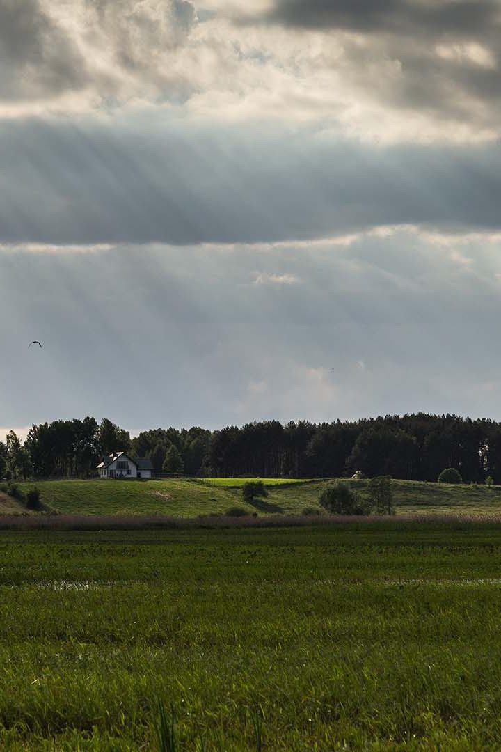 Wyjechaliśmy z lasu i pośród pól skręciliśmy na Kołodzieje. W tym miejscu droga się kończy, polecamy zatem spacery wzdłuż biebrzańskich łąk. Również z Giełczyna w kierunku Biebrzy prowadzi kilka urokliwych ścieżek. Poruszanie się po tym terenie nie jest łatwe – samochód lepiej zostawić przy zabudowaniach, a resztę drogi pokonać pieszo. Trudno określić, ile uda się zwiedzić. Czasami nawet latem po większych opadach niektóre drogi bywają zalane. Wprawne oko dojrzy z oddali zabudowania po drugiej stronie rzeki, które na początku trasy mijaliśmy samochodem!